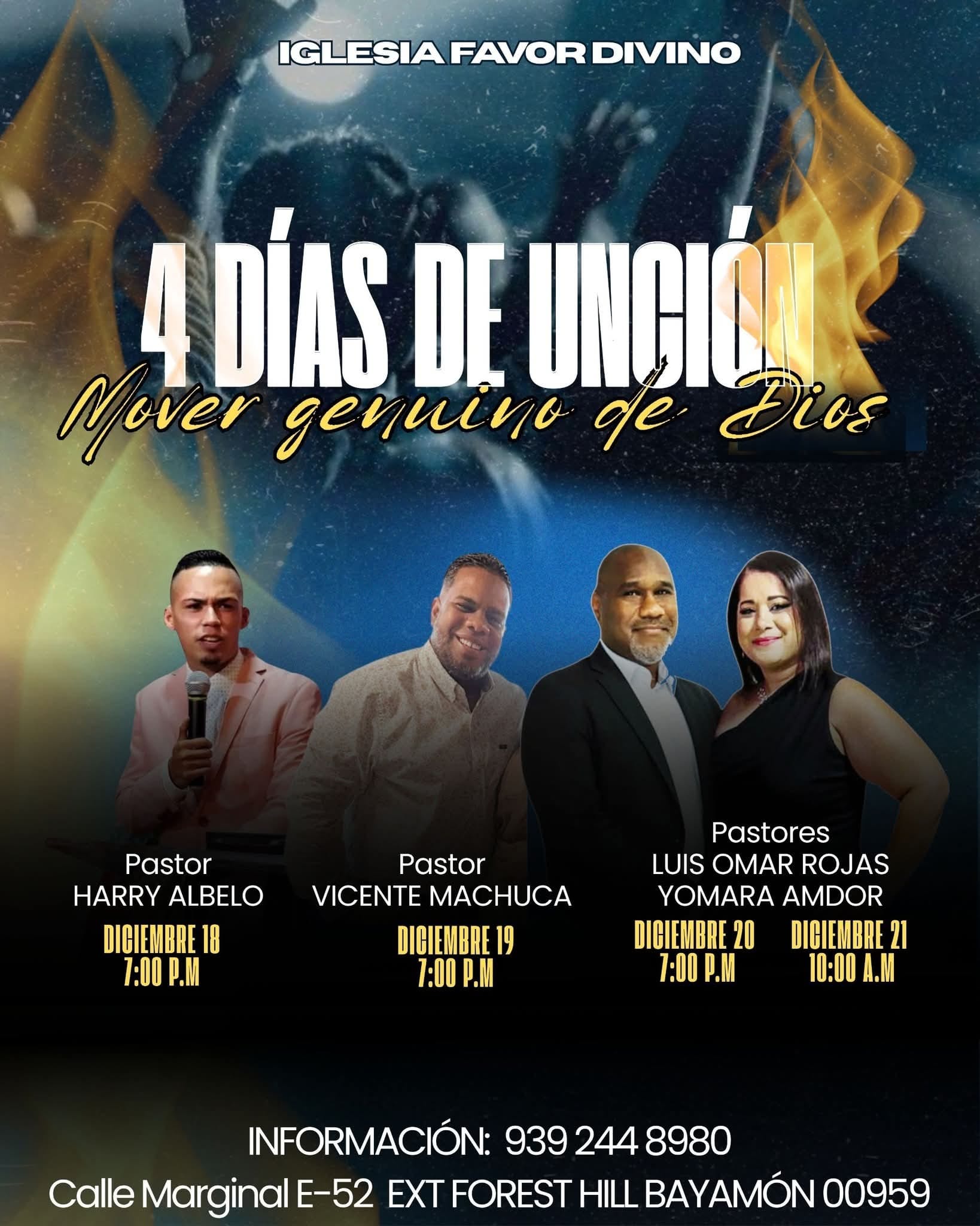 Jueves 18, Viernes 19, Sabado 20 y Domingo 21 de Diciembre, Iglesia favor divino, E 52 C. Marginal, Bayamón, 00957lugar